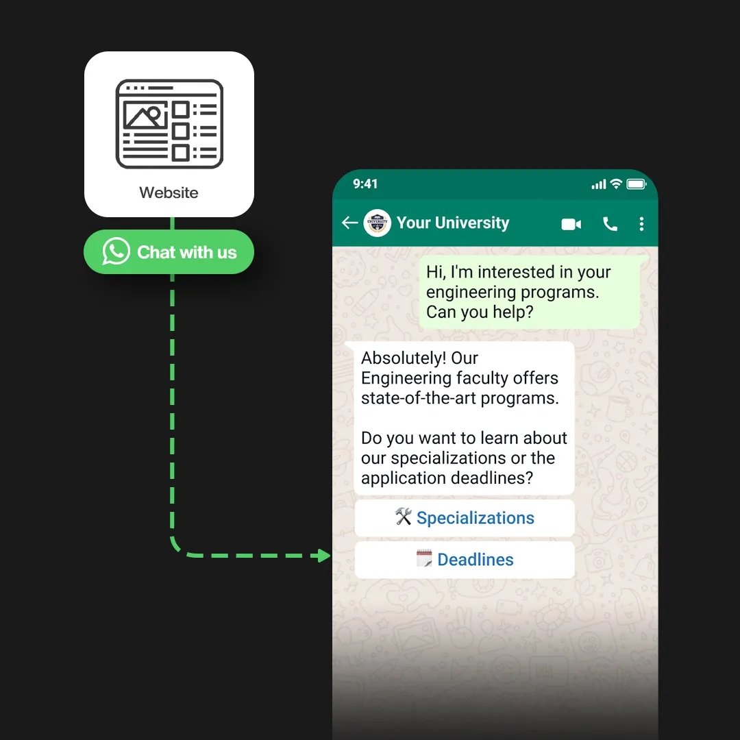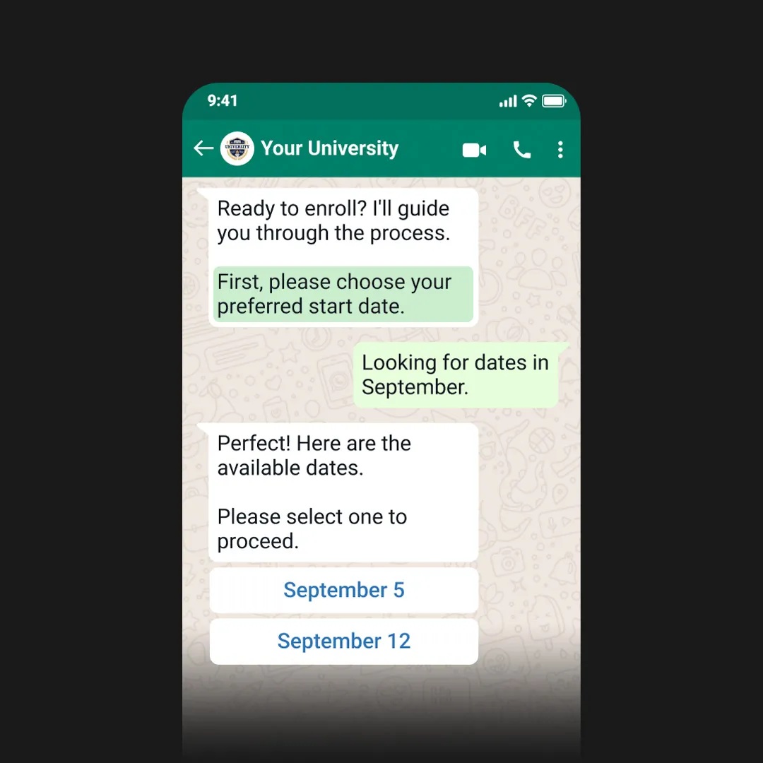 Streamline the admission process and decrease the need for human intervention by 60% with WhatsApp chatbots.
