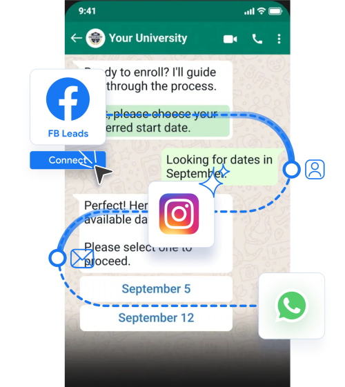 Direct your Facebook and Instagram leads to receive real-time support via WhatsApp, their preferred messaging platform.