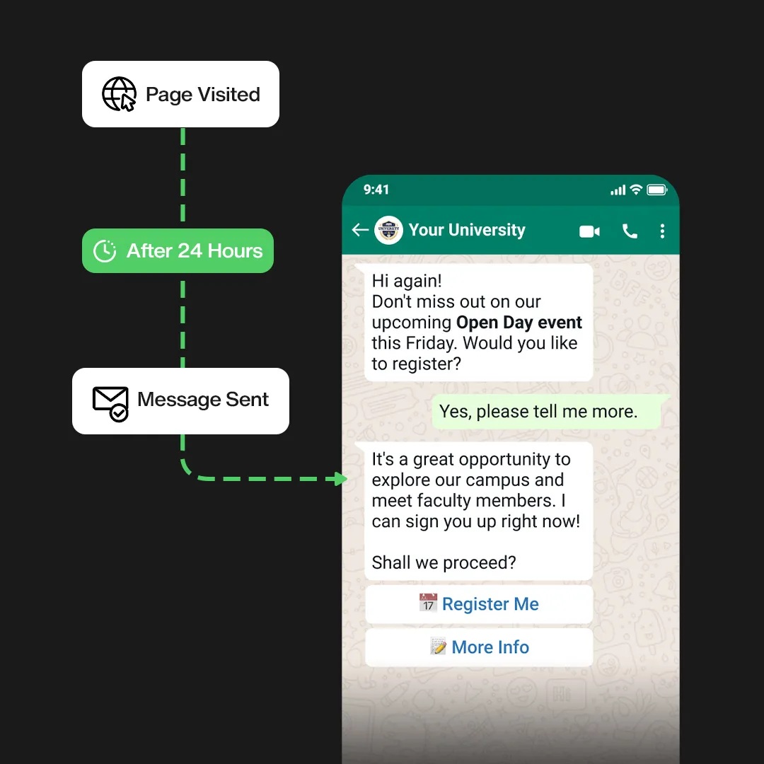 Streamline the admission process and decrease the need for human intervention by 60% with WhatsApp chatbots.